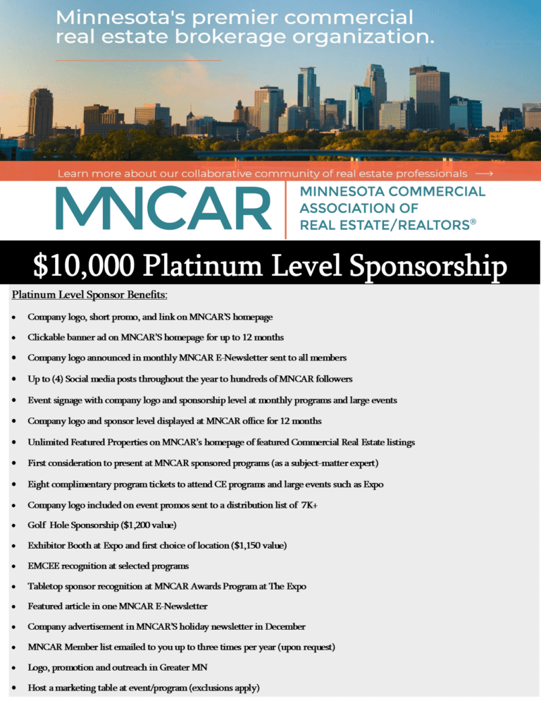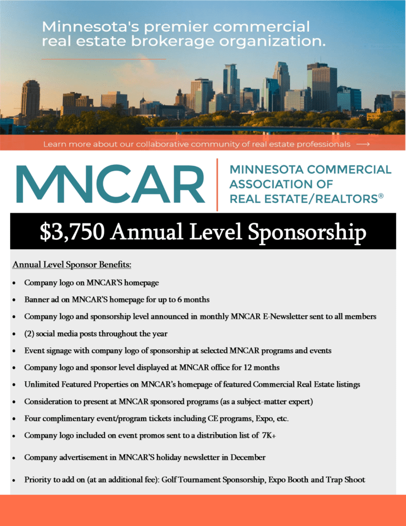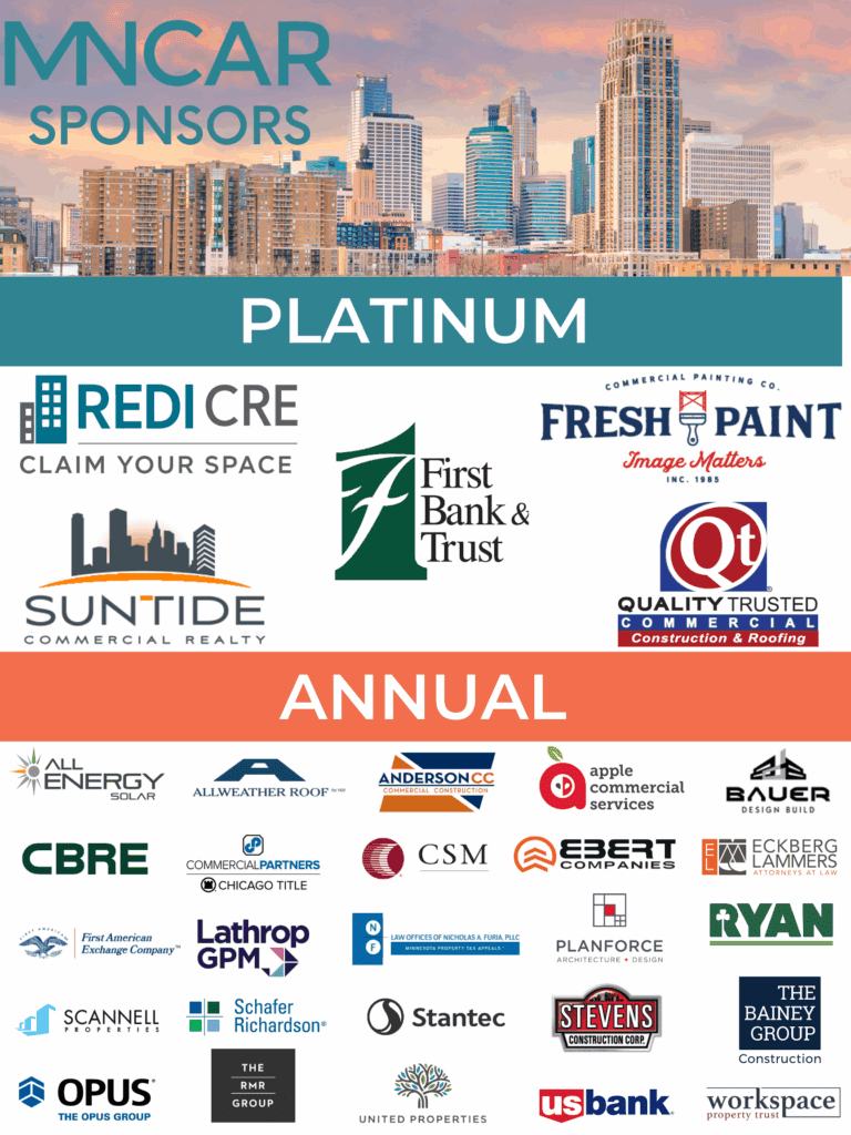 Get access to the best performers in the commercial real estate industry along with top tier educational programming and networking opportunities! With a 1200+ membership base, MNCAR members represent 95% of the listing agent population in the metro area. In addition to broker memberships, MNCAR is proud to offer Affiliate Memberships to vendors, sponsors, and top industry resources also.